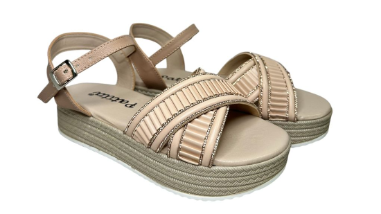 SANDALIA SUELA ALTA, DISEÑO DE FAJAS CRUZADAS PLIZADAS