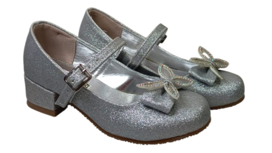 ZAPATO PATITA PARA NIÑA, COLOR PERLA, CON DETALLE DE MARIPOSA